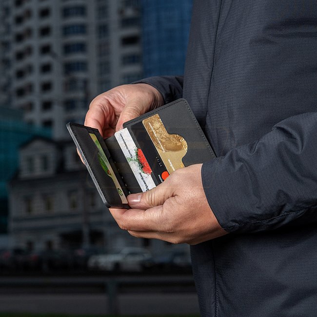 Le portefeuille compact et élégant Wallet Slim Elite est conçu pour stocker de l'argent, des cartes et des cartes de visite. Ce portefeuille est fabriqué à partir d'un composite polymère moderne, qui présente une résistance à l'abrasion, une résistance et une durabilité exceptionnelles. Ce modèle dispose d'un compartiment pour les billets papier, de 6 fentes pour les cartes plastiques et d'un rivet en laiton siglé. Cet accessoire compact sera intéressant pour ceux qui apprécient la commodité et la praticité. En raison de sa taille, il se glissera facilement dans votre poche.