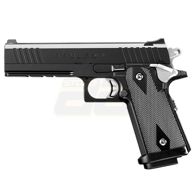 Pistolet AEP Marui Hi-Capa de haute qualité au design noir élégant, doté d'un matériau en plastique ABS et d'une capacité de chargeur de 28. Léger à 750g, d'une longueur de 220mm et d'une longueur de canon interne de 125mm. La vitesse à la bouche varie de