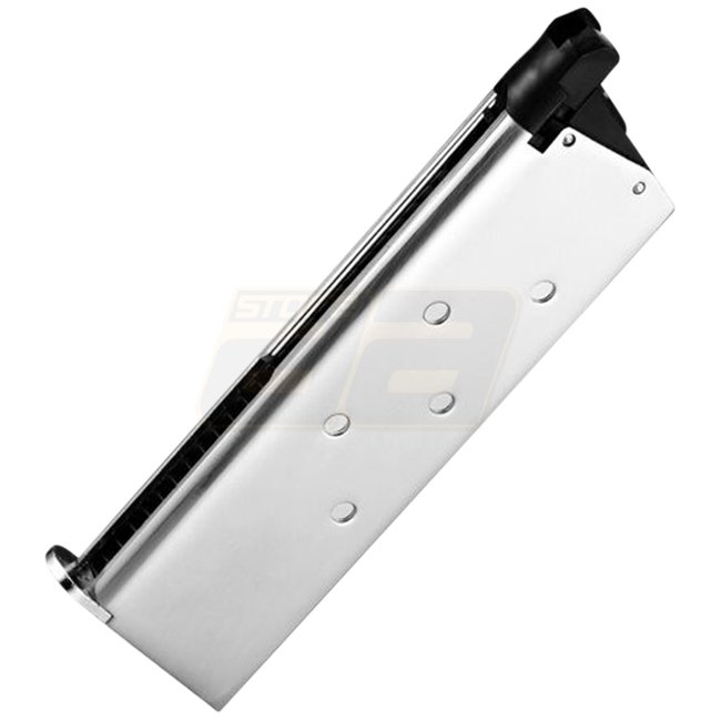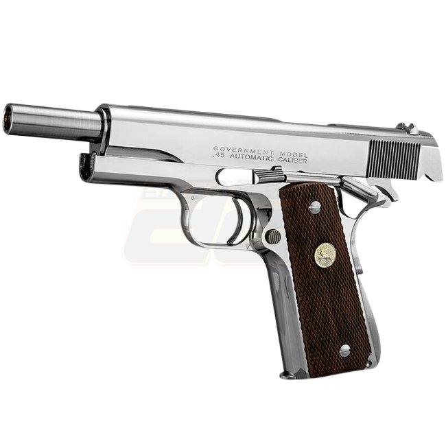 Pistolet à gaz à recul Marui M1911 Government 70 finition nickel de haute qualité avec un corps en plastique ABS, capacité de magasin de 26 balles, longueur de 217 mm, poids de 799 g, canon intérieur de 110 mm, vitesse à la bouche de 280-300 FPS, mode de