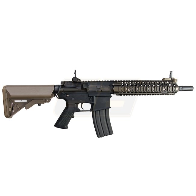Construction en métal avec crosse et poignée en plastique. Arrête de tirer lorsque le chargeur est vide. La capacité du chargeur peut être modifiée. Gearbox Version 2 Recoil Shock. Moteur Long Type (EG Hyper 1000). Hop Up réglable. Filetage du canon : 14m