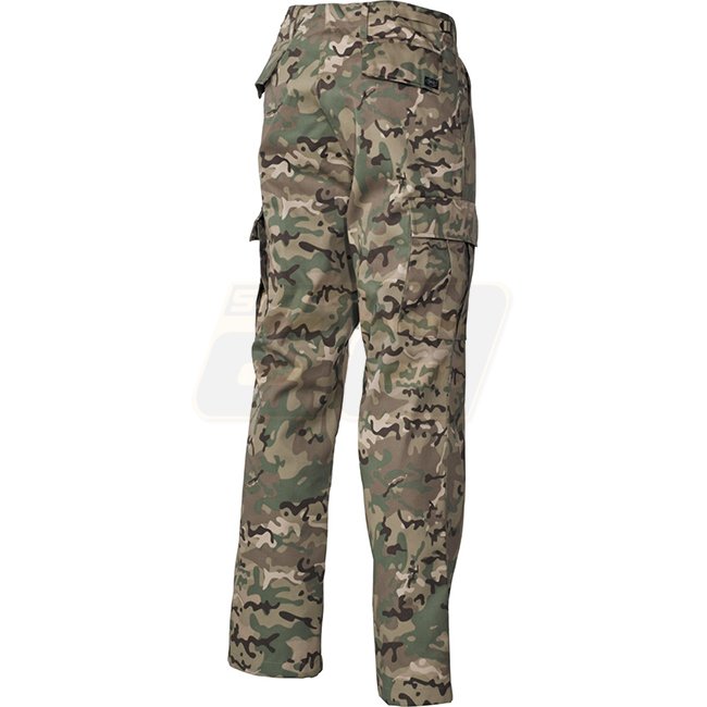 Pantalons de combat MFH US en camouflage opérationnel, taille XL. Pantalons classiques de l'US ARMY avec fermeture éclair à l'avant, 2 poches sur les pantalons, 2 poches sur les hanches avec rabats et boutons, 2 poches sur les jambes avec rabats et bouton