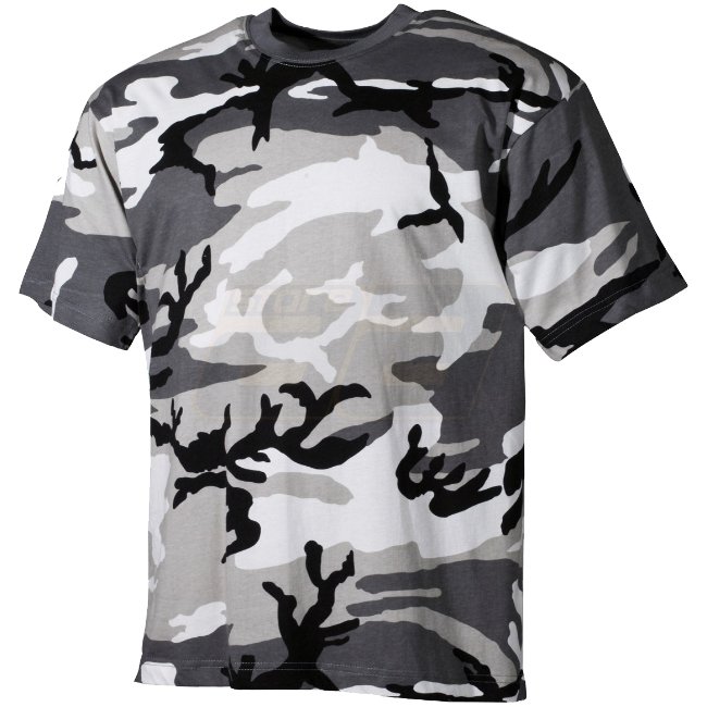T-shirt classique style armée américaine avec col renforcé et teinture réactive. Fabriqué en 100% coton, 170 g/m2. Disponible en camouflage urbain, taille 5XL.