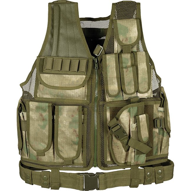 Gilet et ceinture MFH USMC de haute qualité en HDT Camo FG. Matériau de base en maille, cordons de serrage ajustables, plusieurs poches et étuis, support de cartouche amovible, boucles d'attache Molle et ceinture de fixation en plastique. Matériau 100 % P