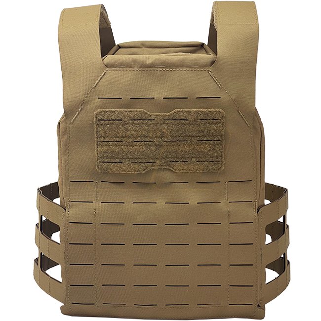 Le Porte-Plaque Modulaire Léger Pitchfork LMPC en couleur Coyote est une solution polyvalente et personnalisable pour vos besoins en équipement tactique.