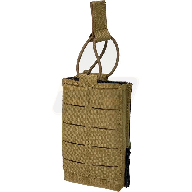 Le porte-chargeur simple ouvert Pitchfork en Coyote est conçu pour les chargeurs en métal et en polymère M4/M16. Il est doté d'un onglet de serrage réglable et d'un revêtement antidérapant pour une meilleure prise. La surface LaserCut basée sur le système