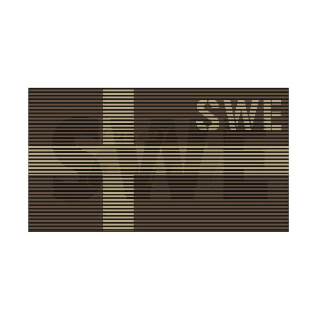 La fourche compacte Pitchfork Sweden IR Dual Patch comporte un film IR sur le devant pour les missions discrètes et une surface à crochet à l'arrière pour une fixation facile. Dimensions : 90 x 50 mm.