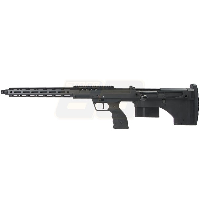 Silverback Desert Tech SRS A2/M2 22 pouces main gauche - Noir, système à ressort, crosse en métal/nylon, chargeur de 25 billes, longueur de 880 mm, poids de 2800 g, longueur du canon interne de 560 mm, filetage de bouche de 14 mm, vitesse de bouche de 410