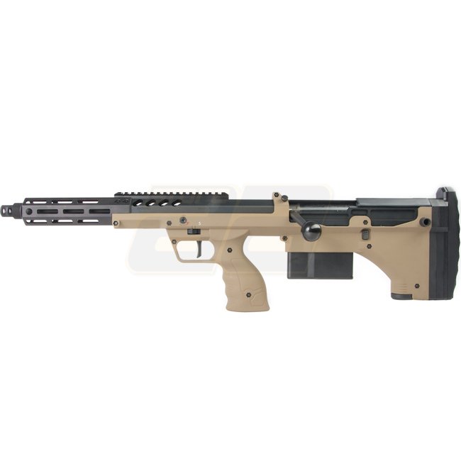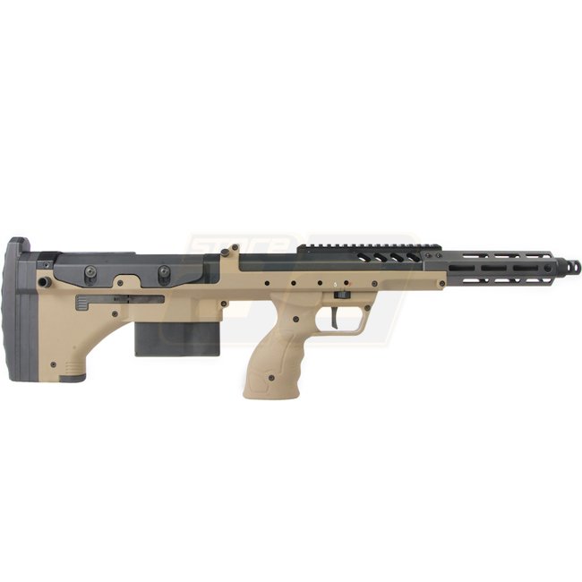 Un fusil covert Silverback Desert Tech SRS A2/M2 puissant et tactique en Dark Earth avec fonctionnement réservé aux gaucher.