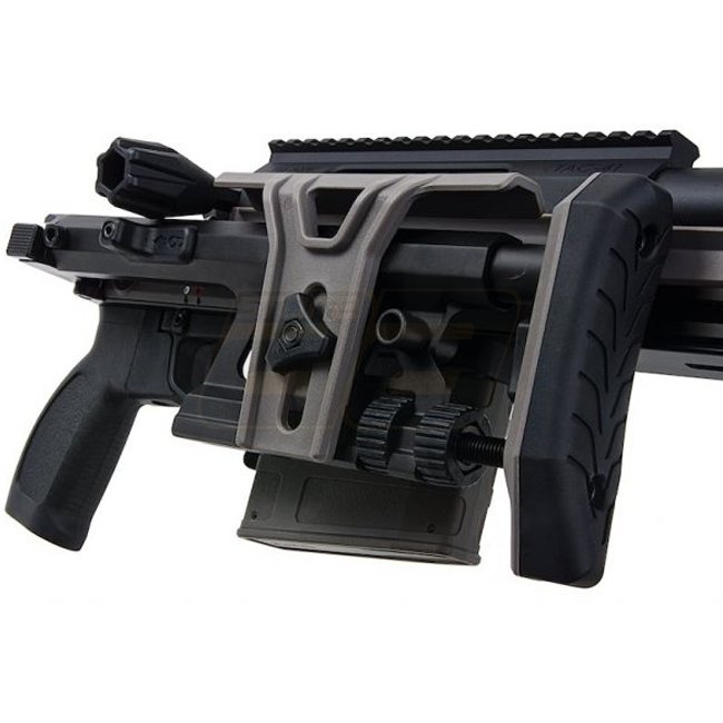 Un fusil de précision à verrou de haute qualité, idéal pour le tir à longue distance, le Silverback TAC-41 en gris loup dispose d'un matériau en métal/nylon durable, d'une capacité de chargeur de 100 coups et d'un système hop-up réglable.