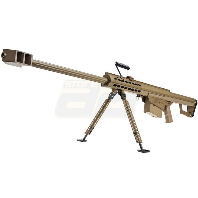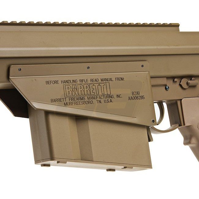 Fusil de sniper à ressort Snow Wolf Barrett M82A1 - Tan. Prêt pour une action de tir intense. Composition en métal / polymère pour la durabilité. Tire à 415-435 FPS pour une précision à longue portée. Hop-up ajustable pour une précision améliorée.