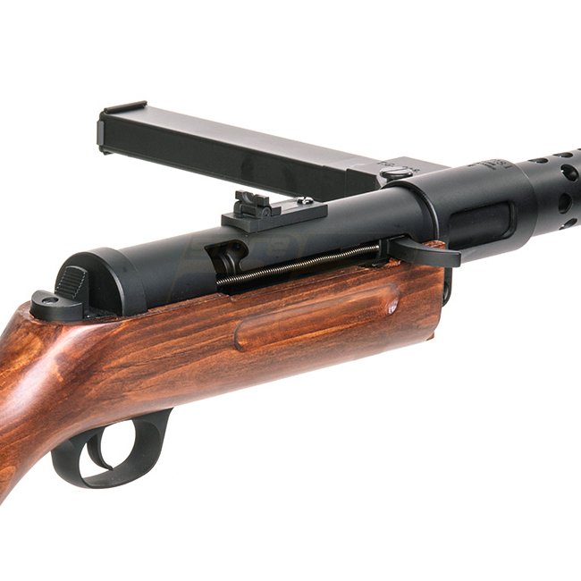 Le fusil airsoft Snow Wolf MP-18 AEG est un puissant fusil avec une crosse en métal et en bois, tirant à 320-340 FPS. Il possède un mode de tir semi-automatique et automatique avec un hop-up réglable pour un ciblage précis. Livré avec un chargeur de 130 b