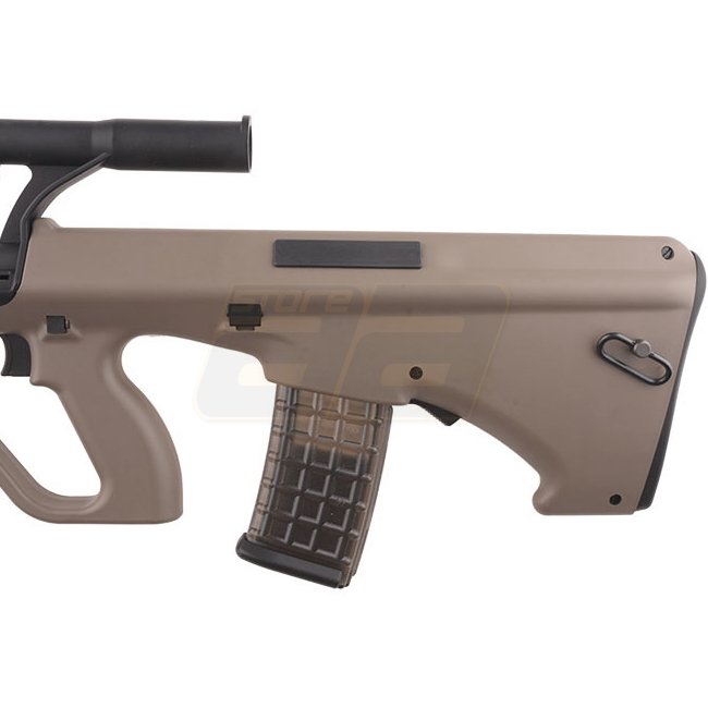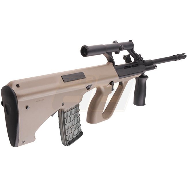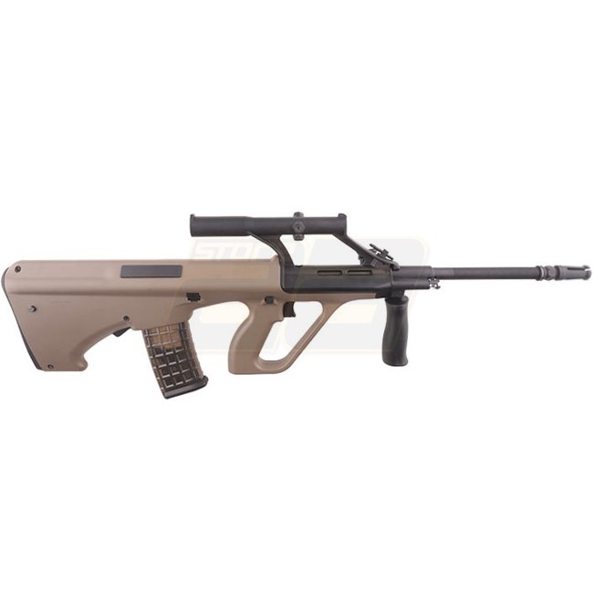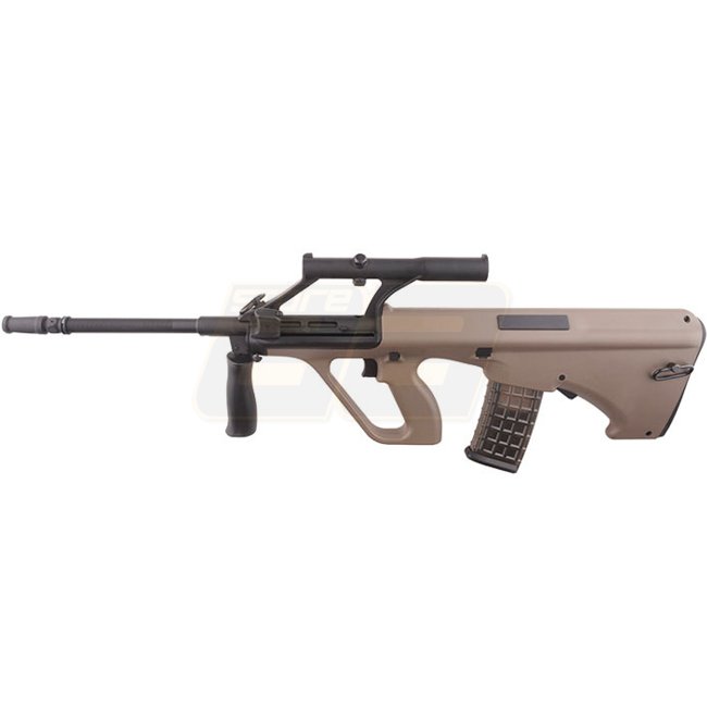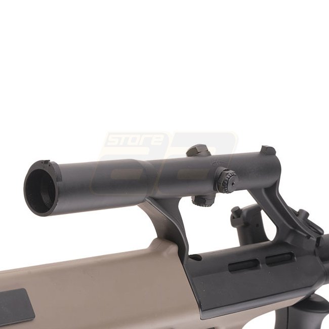 Loup des Neiges SW-020A AEG - Tan. Boîte de vitesses : Version 3, Moteur : Type court, Capacité du chargeur : 330 (6mm), Longueur : 810mm, Poids : 3390g, Vitesse à la bouche : 380-400 FPS, Mode de tir : Semi-automatique et Fully automatique, Batterie : co