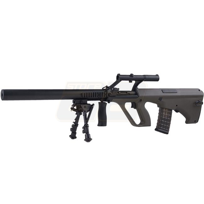Le Snow Wolf SW-20AM AEG en Olive dispose d'un boîtier Version 3, d'un matériau en métal/polymère et d'une capacité de chargeur de 330. Cette réplique d'airsoft pèse 3700g, a une portée de tir de 53,51 à 56,25m, et fonctionne en modes Semi Auto et Full Au