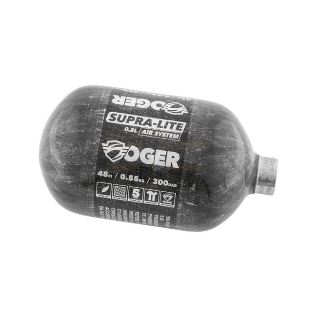 Soger Air Tank Supra-Lite 48ci 4500 psi - Réservoir léger de haute qualité conçu pour une performance constante de pression d'air pendant vos parties de paintball. Offre une capacité de 48 pouces cubes avec une pression de 4500 psi, garantissant fiabilité