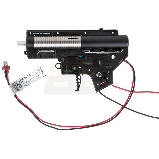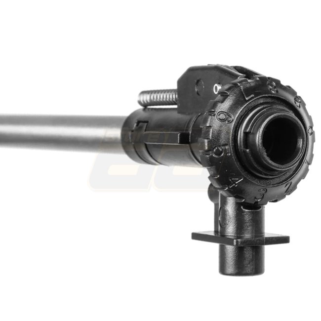 Grâce au système de changement rapide du ressort, le ressort peut être remplacé en quelques étapes seulement. Cet ensemble solide est complété par un hop-up puissant avec molette de réglage rotative et une boîte de vitesses de haute qualité avec ses pièces individuelles de haute qualité. Ces éléments garantissent une grande stabilité et précision, même en cas d'utilisation intensive et une adaptabilité maximale.