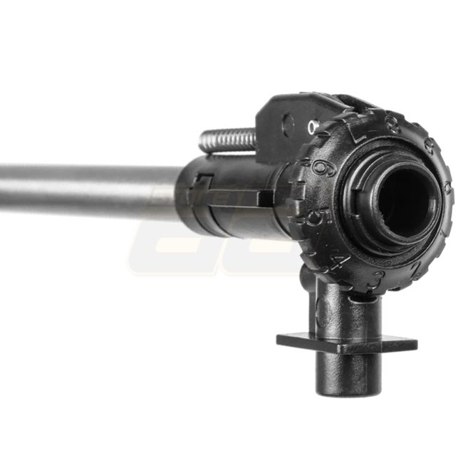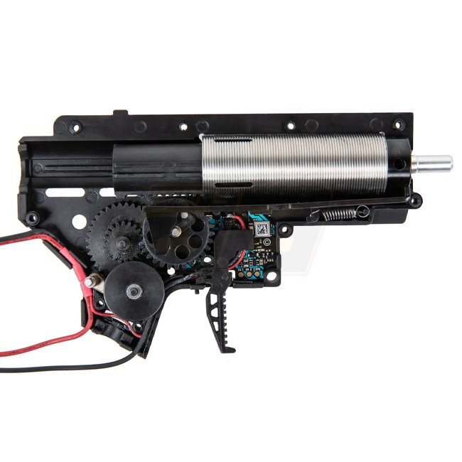 Grâce au système de changement rapide du ressort, le ressort peut être remplacé en quelques étapes seulement. Cet ensemble solide est complété par un hop-up puissant avec molette de réglage rotative et une boîte de vitesses de haute qualité avec ses pièces individuelles de haute qualité. Ces éléments garantissent une grande stabilité et précision, même en cas d'utilisation intensive et une adaptabilité maximale.