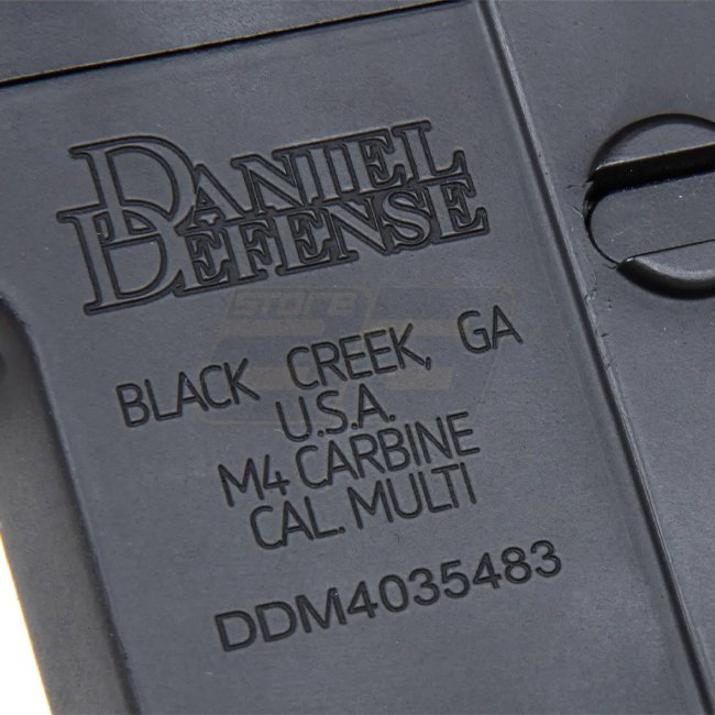Les répliques ont été développées en collaboration avec EMG Arms et portent les marquages sous licence de Daniel Defense®. Daniel Defence est un fabricant d'armes américain bien connu qui produit, entre autres, des variantes de l'AR15 pour l'USSOCOM (United States Special Operations Command).