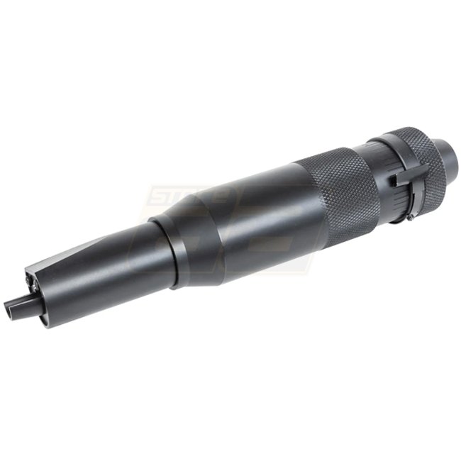 Le PBS-4 Standard de Specna Arms est une reproduction fidèle du silencieux soviétique PBS-4, conçu à l’origine pour les carabines AKS-74UB du complexe spécial 6S1 « Kanarek ». Fabriqué en aluminium PA6 anodisé et usiné CNC, il se distingue par sa solidité et sa précision de fabrication.