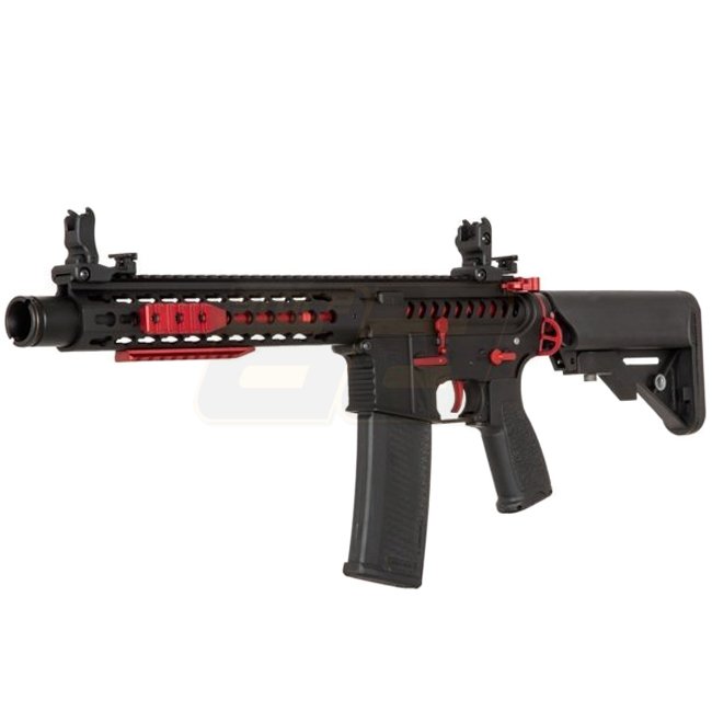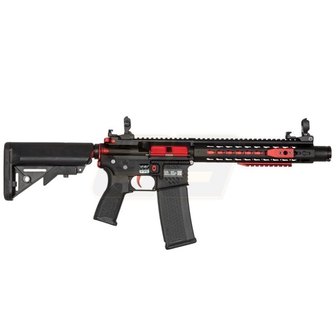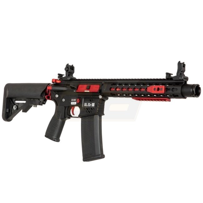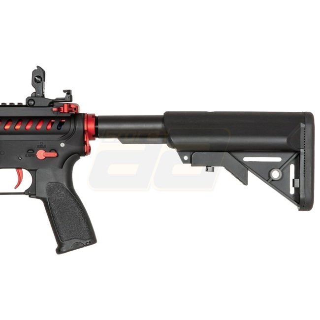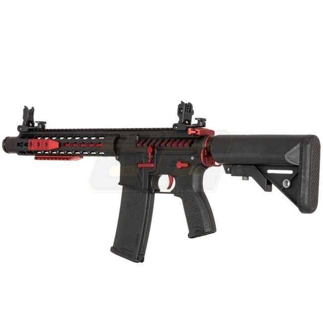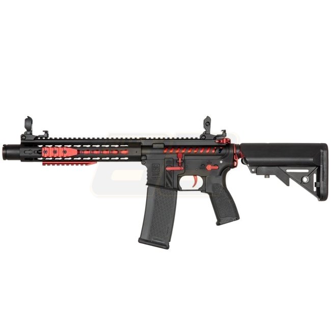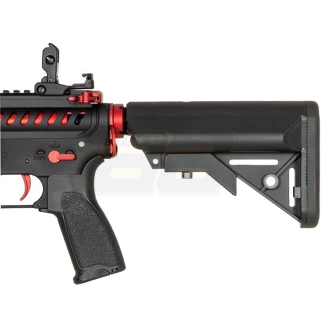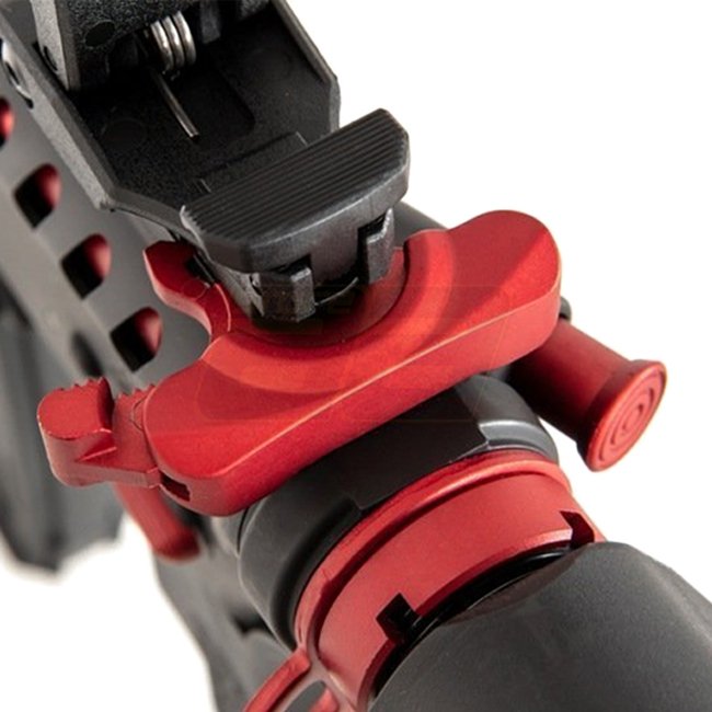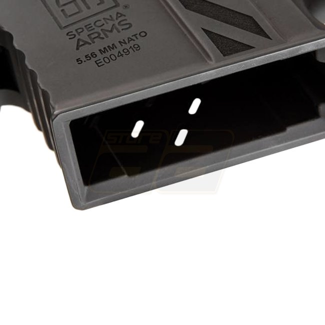 Les modèles de la E-série Specna Arms EDGE sont livrée avec une boîtier en metal nano-enduit. À l'intérieur, une "ORION“ gearbox robuste garantit fiabilité et flexibilité, car ils sont équipées d’un système de changement de ressort rapide "ESA". Grâce à cela, la performance peut être modifiées en quelques étapes simples. De plus, dans la gearbox est déjà installé un mosfet GATE X-ASR. Les pièces intégrées permettent l'utilisation de ressorts de différentes résistances (jusqu'à M140). Le canon intérieur de 6.03mm combiné avec une HopUp Unit de précision rotative assure la précision nécessaire. En plus du ressort intégré en usine, Specna Arms fournit un ressort M90 supplémentaire, ce qui peut réduire la performance de l'AEG à env. 310 FPS.