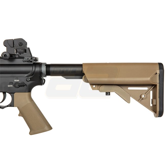 La crosse et la poignée pistolet sont en plastique polymère. L'AEG utilise le système de changement de ressort rapide Enter & Convert™. Cela permet un ajustement rapide et efficace des performances de la réplique aux conditions attendues sur le terrain, sans avoir besoin d'accéder à un atelier ou à un ensemble d'outils spéciaux - après avoir retiré la boîte de vitesses, le changement de ressort lui-même prend littéralement quelques secondes.