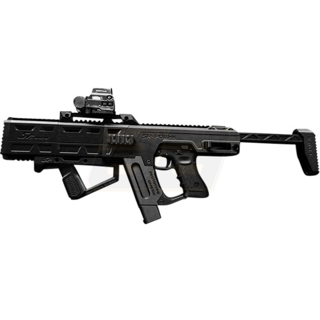 Améliorez votre arme à feu avec le kit de carabine SRU PDW-K et le garde-main prolongé en noir élégant. Cet accessoire polyvalent améliore à la fois le style et la fonctionnalité pour une expérience de tir plus tactique.