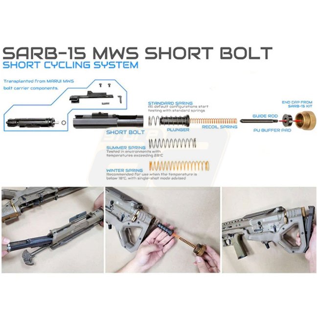 SRU SARB15 Marui MWS GBB Short Cycling Bolt System – Noir