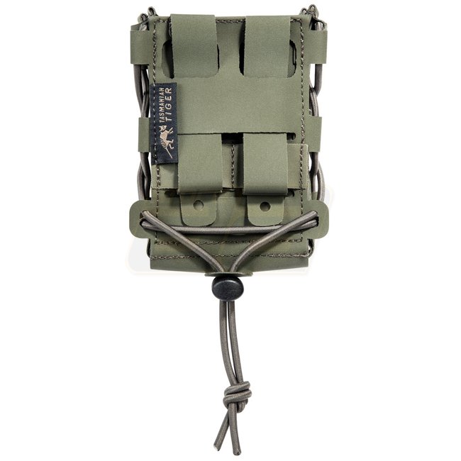 Poche double mag Tasmanian Tiger MCL Anfibia - Olive. Contient deux chargeurs de fusil, fabriquée en Nylon TPU 420D (étanche). Ne pèse que 105g et a des dimensions de 11 x 7,5 x 4 cm.