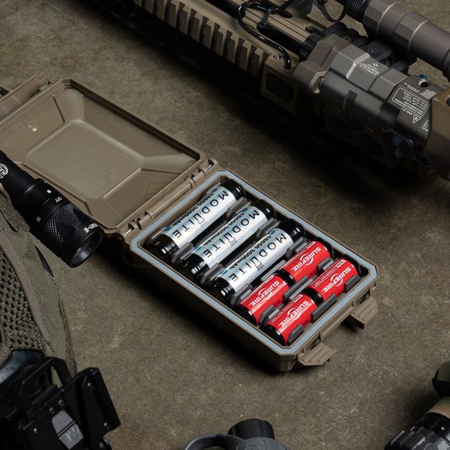 Le THYRM CellVault-5M propose un stockage modulaire pour différentes tailles de batteries, incluant un joint étanche à l'eau, un verrouillage sécurisé et des sangles d'attachement MOLLE. Construction en polymère durable. Dimensions : 16,5 x 91,4 x 5,0 cm.