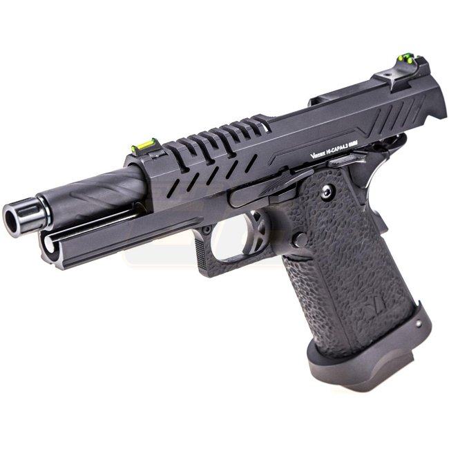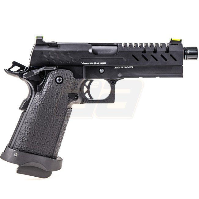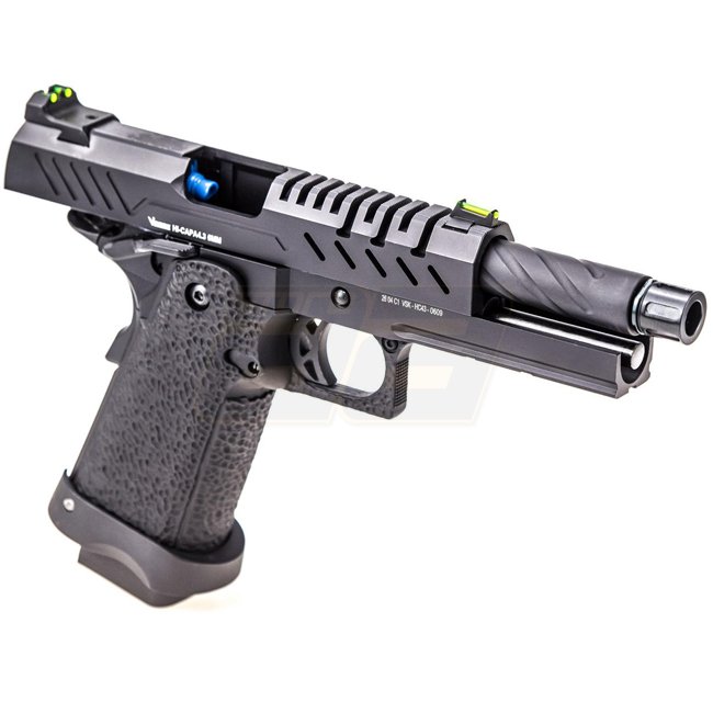 Pistolet à gaz Vorsk Hi-Capa 4.3 - Noir. Métal/Polymère, chargeur de 23 cartouches, longueur de 220 mm, poids de 890 g, canon interne de 90 mm, vitesse de 320-340 FPS, Semi-Automatique, portée de 43.90-46.65 m, Hop Up réglable. Comprend l'arme et le charg