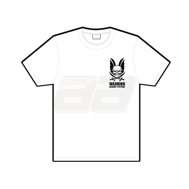T-shirt Warrior en blanc - Tailles S, M, L, XL, XXL avec mesures de poitrine.