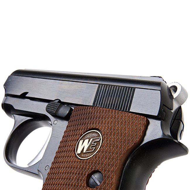 Pistolet à gaz blow back WE CT25 - Noir, construction en métal et en polymère, capacité de chargeur de 7 cartouches, taille compacte de 150 mm, léger à 308 g, mode de tir semi-automatique, hop-up ajustable, le paquet comprend le pistolet et le chargeur.