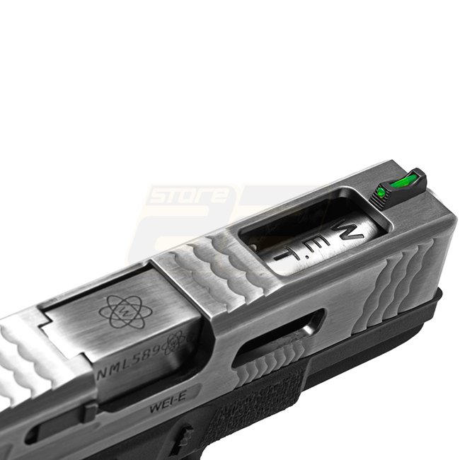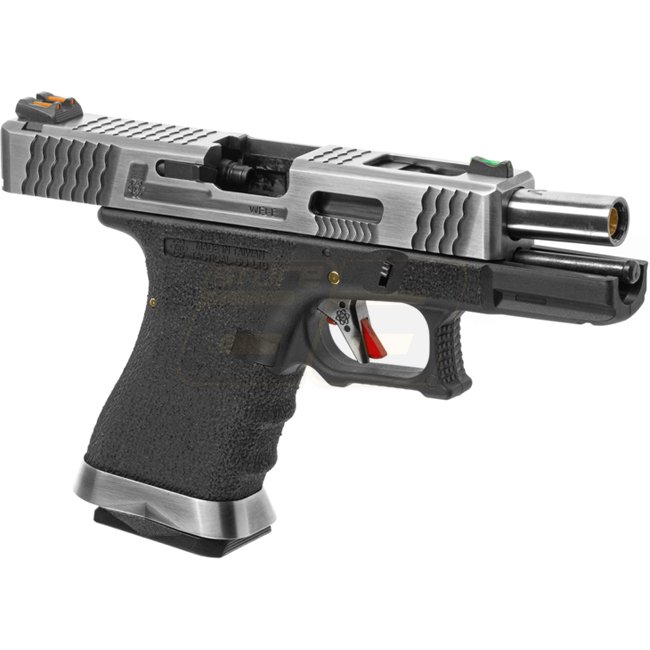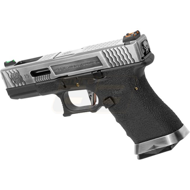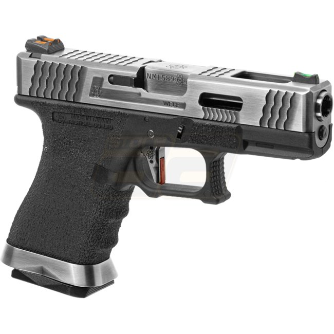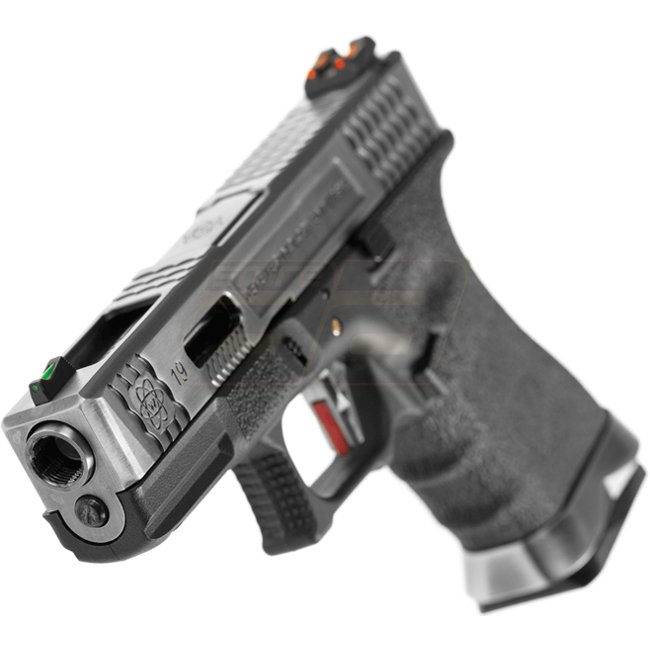 Un pistolet à gaz blowback de haute qualité, le WE G-Force 19 SV Pistolet Canon Argent en noir est idéal pour le tir tactique. Construction en métal et en polymère, chargeur de 22 coups, longueur de 185 mm, poids de 730 g, canon intérieur de 80 mm, vitess