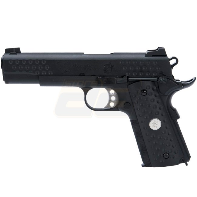 Le WE Knight Hawk est un pistolet airsoft à gaz blowback de haute qualité, inspiré du modèle classique 1911 avec une finition personnalisée moderne. La texture "golfball" sur la glissière et les plaquettes de crosse offre à la fois un style unique et une excellente adhérence.