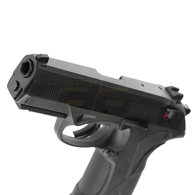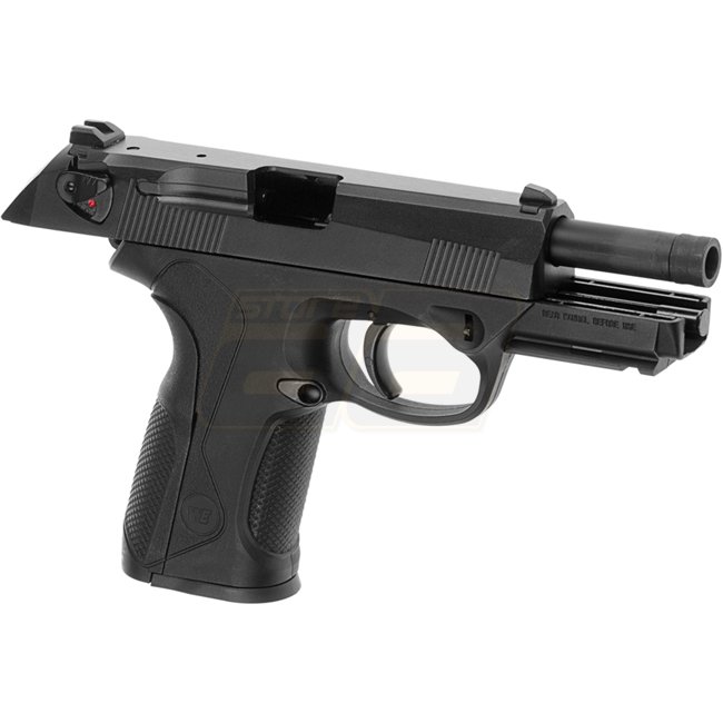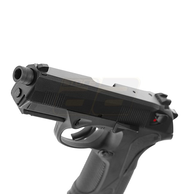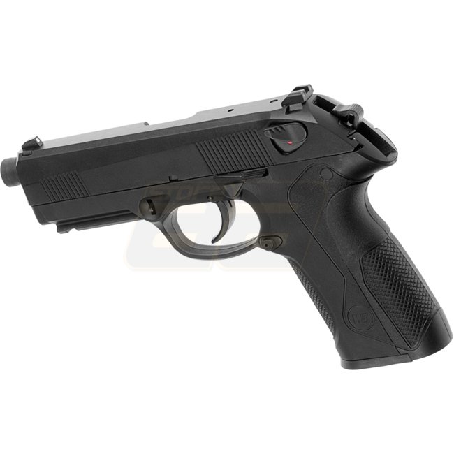 Pistolet à gaz Blow Back WE PX4 Bulldog - Noir : Construction en métal/polycarbonate, chargeur de 26 coups, longueur de 202 mm, poids de 930 g, canon interne de 91 mm, vitesse à la bouche de 320-340 FPS. Mode de tir semi-automatique avec hop up réglable.