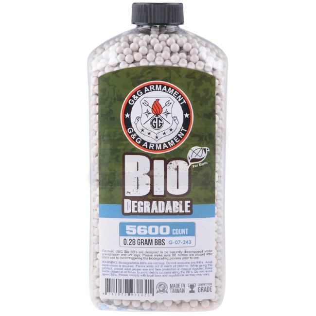 G&G 0.28g Bio Precision BBs 5600rds - White: High-quality biodegradable BBs designed for precision shooting, perfect for airsoft enthusiasts. Pack of 5600 rounds ensuring long-lasting supply during intense gaming sessions.