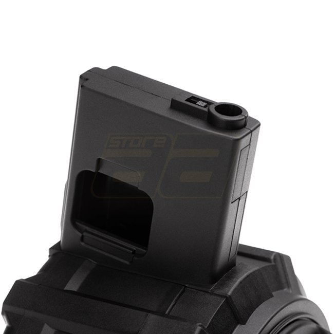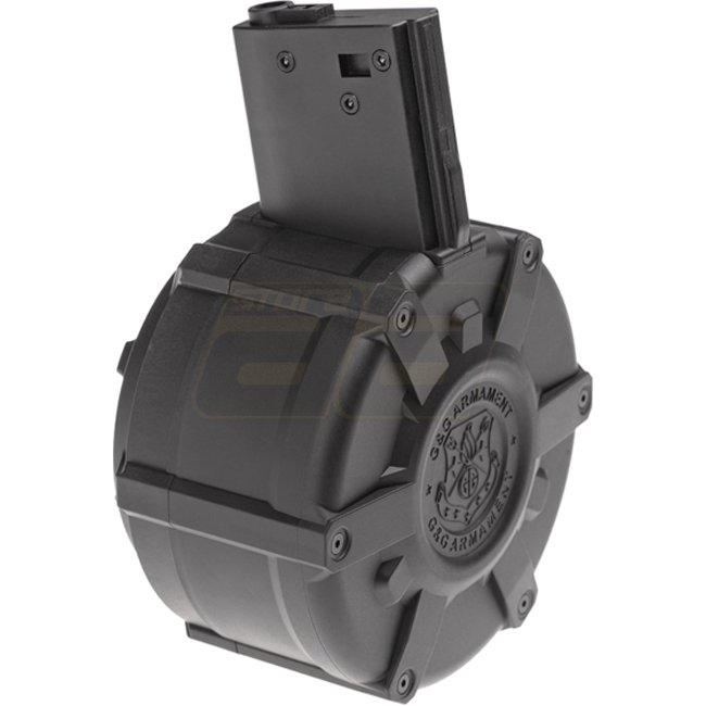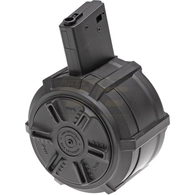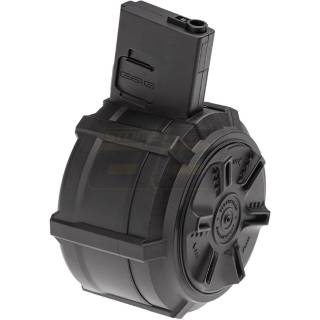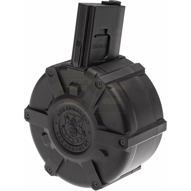 G&G M4 drum magazine holds 2300 rounds, perfect for extended battles. Durable construction and high capacity provide reliable performance on the field.