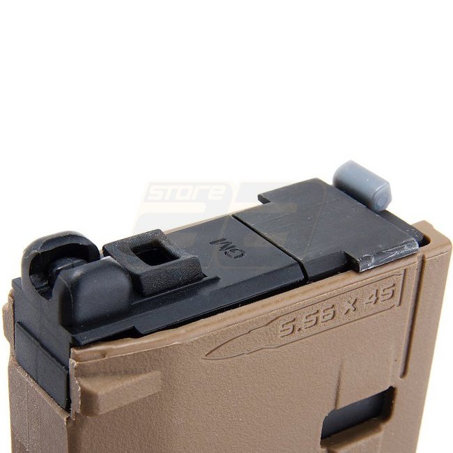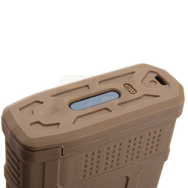 GunsModify M4 MWS 35rds Gas Blow Back Rifle Magazine in Dark Earth. Polymer construction with built-in thermometer for temperature measurement. Compatible with Marui M4 MWS Gas Blow Back Rifle system.