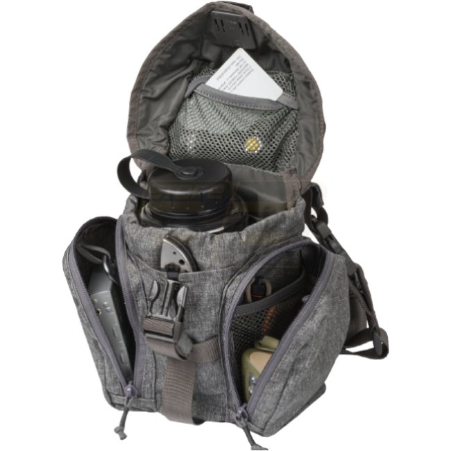 The Helikon-Tex Essential Kitbag in Black-Grey Melange is a versatile bag designed for carrying all your outdoor essentials. With multiple compartments and pockets, it can hold a variety of items like a water bottle, stove, flashlight, compass, and more.