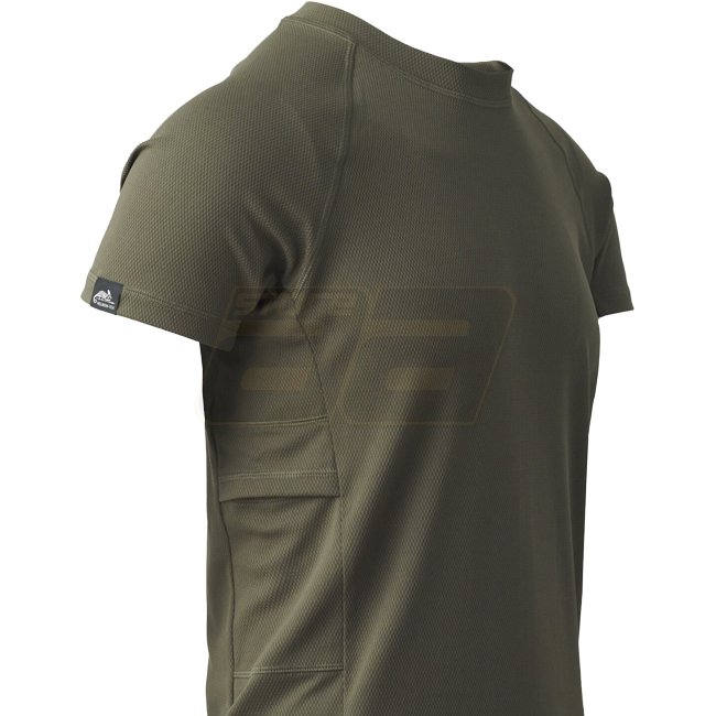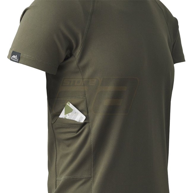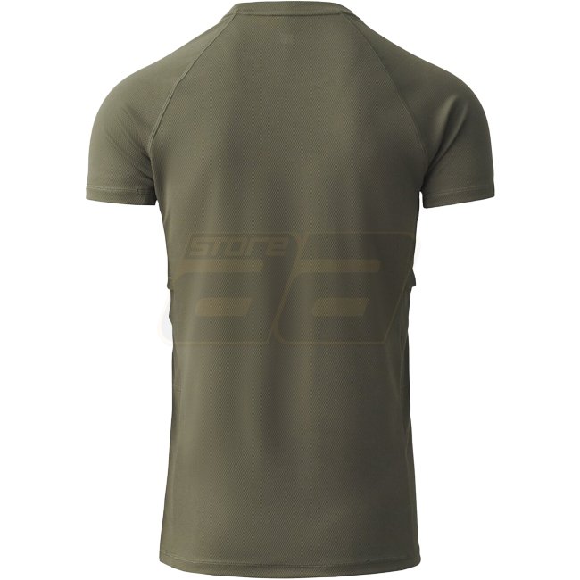 Helikon-Tex Functional T-Shirt Quickly Dry in Olive Green - S. A comfortable polyester T-shirt designed for training, featuring quick-drying and breathable fabric. Anatomical cut with flat seams for enhanced comfort. Equipped with two flat pockets for con