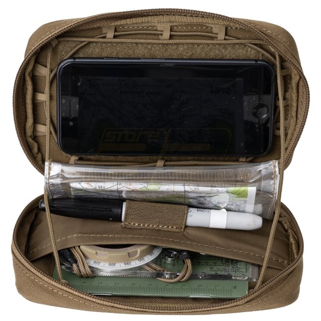 Admin Pouch is a functional administrative pocket designed for organizing and carrying accessories related to navigation and field communication. The interior has been designed specifically to store a phone and maps. A hook & loop adapter allows you to attach your phone. In turn, covers made of transparent foil are perfect for placing maps and notes.