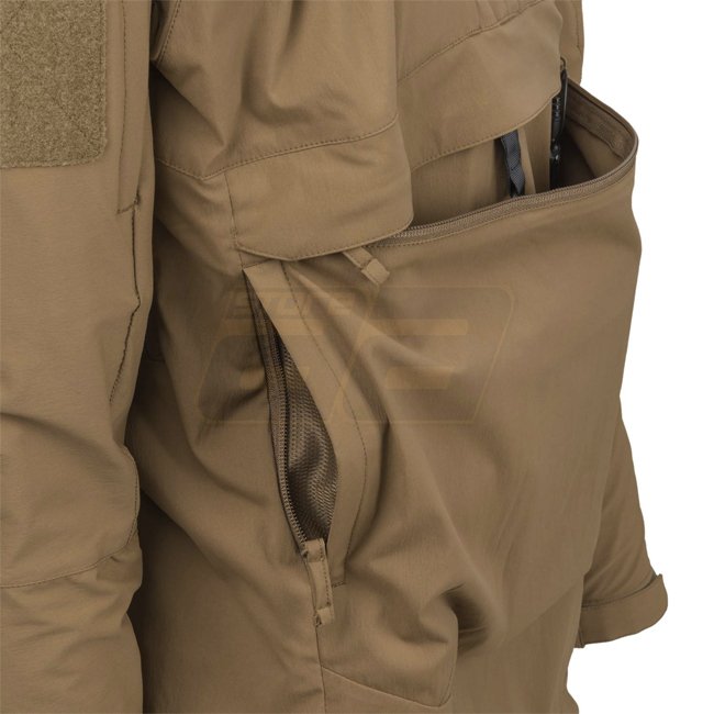 Stay protected from the elements with the Helikon-Tex Mistral Anorak Jacket. Made of StormStretch fabric with loop panel for personalization, this black jacket features a large kangaroo pocket, adjustable hood, bicep pockets, elbow reinforcements, ventila