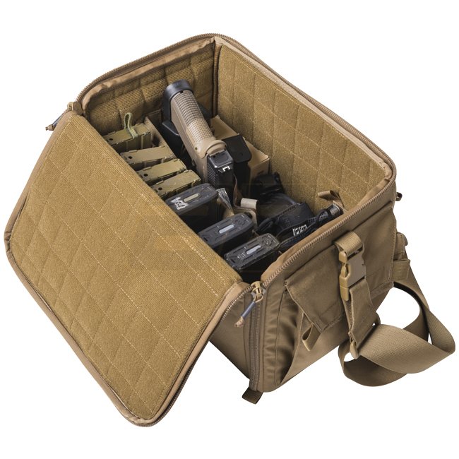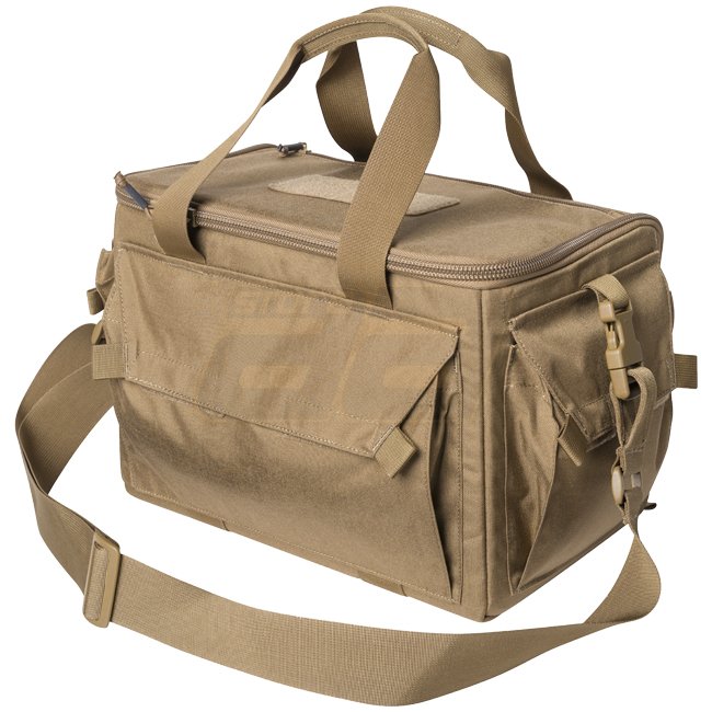 Multipurpose Helikon-Tex Range Bag in Coyote color, made of durable Cordura fabric. Features main compartment with velcro lining, YKK zippers, and 18l capacity. Dimensions 350x255x200mm; weight 1930g.