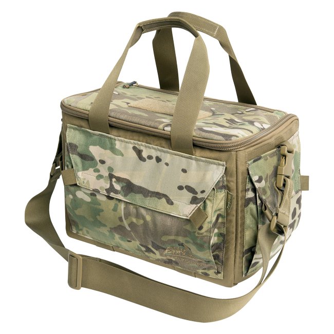 Helikon-Tex Range Bag is a durable 18l multicam bag made of Cordura fabric with main compartment lined with velcro and YKK zippers. Dimensions: 350x255x200mm, Weight: 1930g. Accessories in pictures not included.