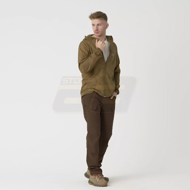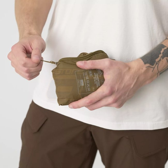 The Helikon-Tex Tramontane Jacket is an ultralight windproof layer designed for outdoor enthusiasts seeking protection against wind and light rain. Weighing approximately 120 g, it can be compressed into its own chest pocket to the size of a beverage can, making it highly portable and convenient for unpredictable weather conditions.