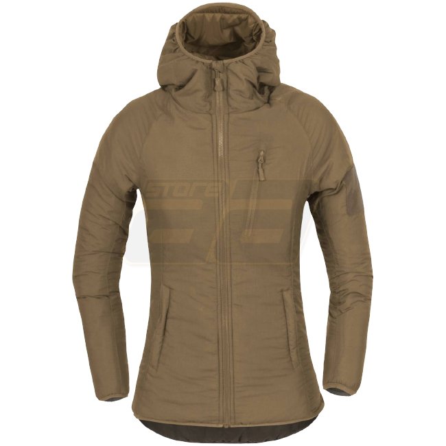 Stay warm and dry with the Helikon-Tex Women's Wolfhound Hoodie Jacket. Lightweight and insulated, this jacket features a protective DWR layer for light rain resistance and Climashield Apex insulation for thermal comfort. Its nylon fabric with a dense wea