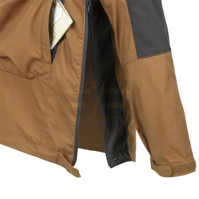 Stay protected and organized with the Helikon-Tex Woodsman Anorak Jacket in Coyote, Size L. Features DuraCanvas fabric, StormStretch gussets, large kangaroo pocket, adjustable hood and cuffs, ventilation zippers, and YKK zippers for durability.