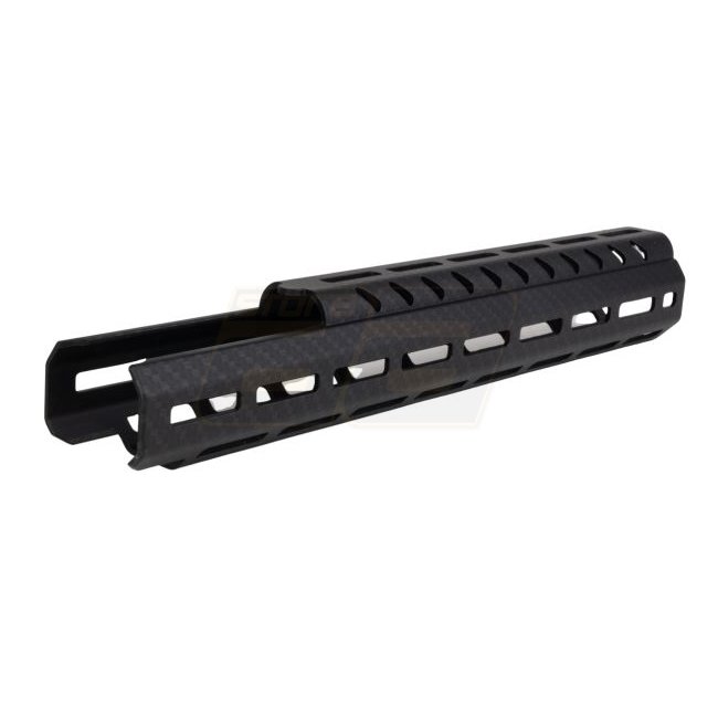 - CNC-machined aluminum handguard with M-LOK system and faux carbon fiber finish