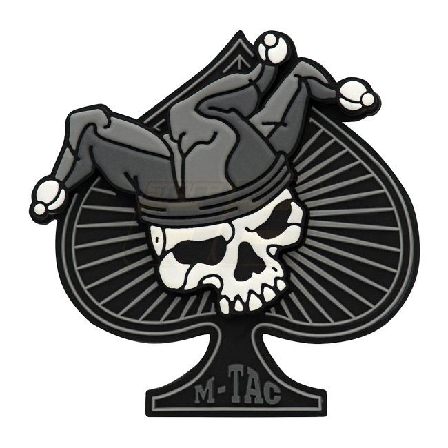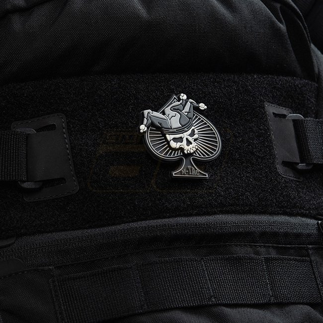 M-Tac Ace of Spades Rubber Patch - White. Rubber patch with hook surface, sized at 50x60mm. Add flair to your gear!