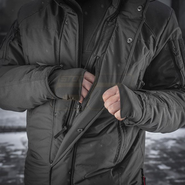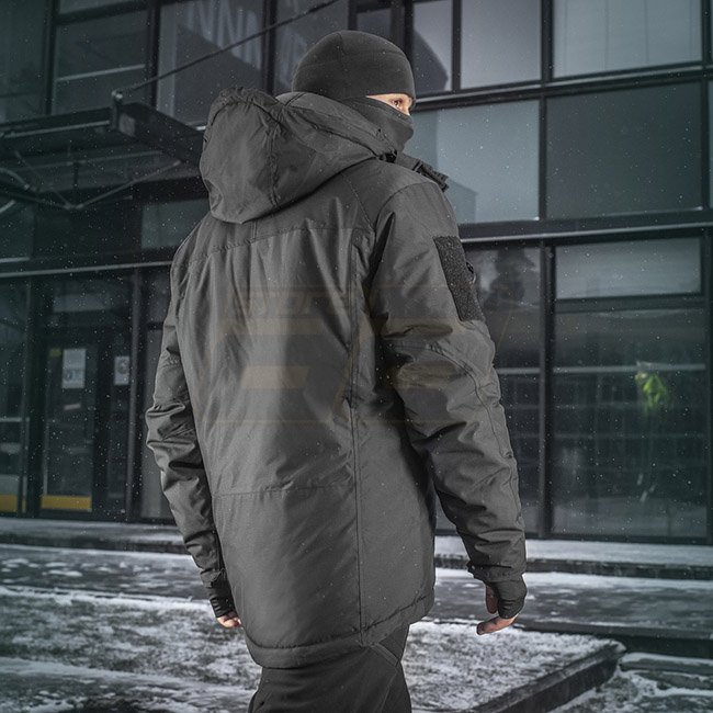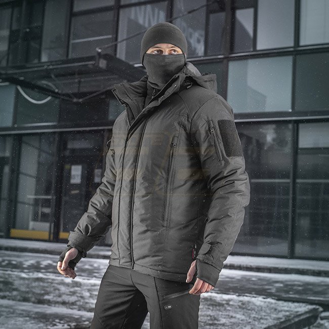 The M-Tac Alpha Extreme Winter Jacket Gen.III in Black XL is a tactical urban jacket designed for law enforcement and security agencies. Featuring adjustable collar with padded hood, fleece cuffs, and wind/waterproof zippers for winter conditions.