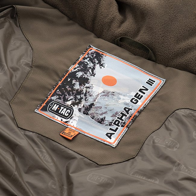 The M-Tac Alpha Winter Jacket Gen.III in Dark Olive color and size S Regular is a multifunctional jacket designed for moderate physical activity in cold winter conditions. Featuring effective insulation, windproof and waterproof zippers, adjustable collar